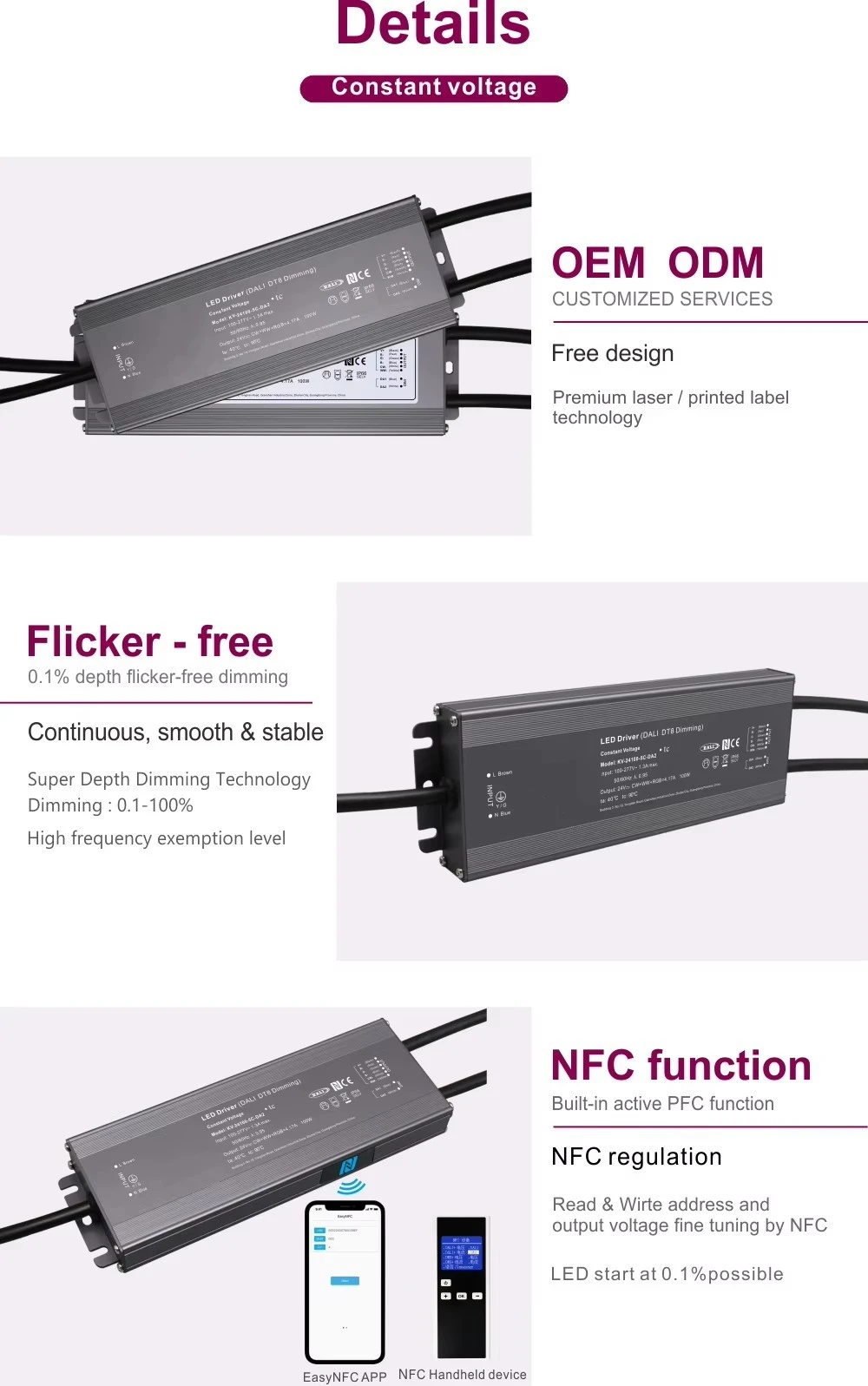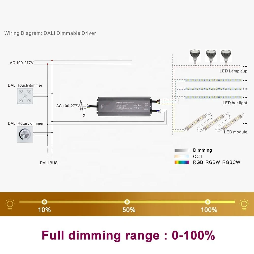 100W tentsio konstante DALI CCT dimmable LED kontrolatzailea