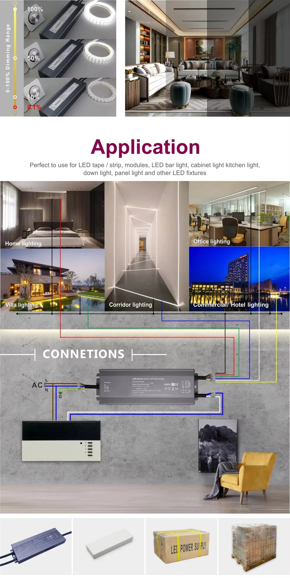 Bateragarritasun unibertsala, eraikuntza malkartsua eta iluntze adimenduna konbinatuz, kontrolatzaile hau etorkizuneko potentziarako irtenbide aproposa da LED argiztapen profesionaletarako eta errotulu mugikorreko aplikazioetarako, errendimendua eta iraunkortasuna bermatuz.