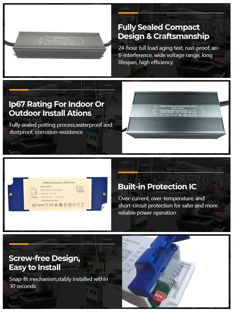 STARWELL kalitate handiko 1200mA korronte konstanteko LED iragazgaitza kontrolatzailea, kanpoko/hezeguneetako LED argiztapenetarako bereziki diseinatua, 10-40W-ko kale-argiekin, lorategiko argiekin, urpeko argiekin, iragarki-kaxekin eta beste hainbat eszenatokirekin bateragarria. Zehaztasun handiko korronte konstanteko txip bat hartuta, irteerako korrontearen errorea ≤±% 3 da, zehaztasunez eta egonkorki mantentzen da 1200mA-n, funtsean keinua (flacker-sakonera % 5) eta argiaren usteltze arazoak, LED aparatuen bizitza % 30 baino gehiago luzatzeko; IP67 iragazgaitza zigilatzeko teknologiaz + ontzi iragazgaitza teknologiaz hornituta, maila iragazgaitza ez da isurketarik lortzen 30 minutuz ur azpian metro 1ean, euria, ura eta hautsa bezalako ingurune gogorrei aurre egiteko gai dena, kanpoan 50.000 ordu baino gehiagoko etengabeko lan-bizitzarekin, epe luzerako erabilera fidagarriagoa izanik.