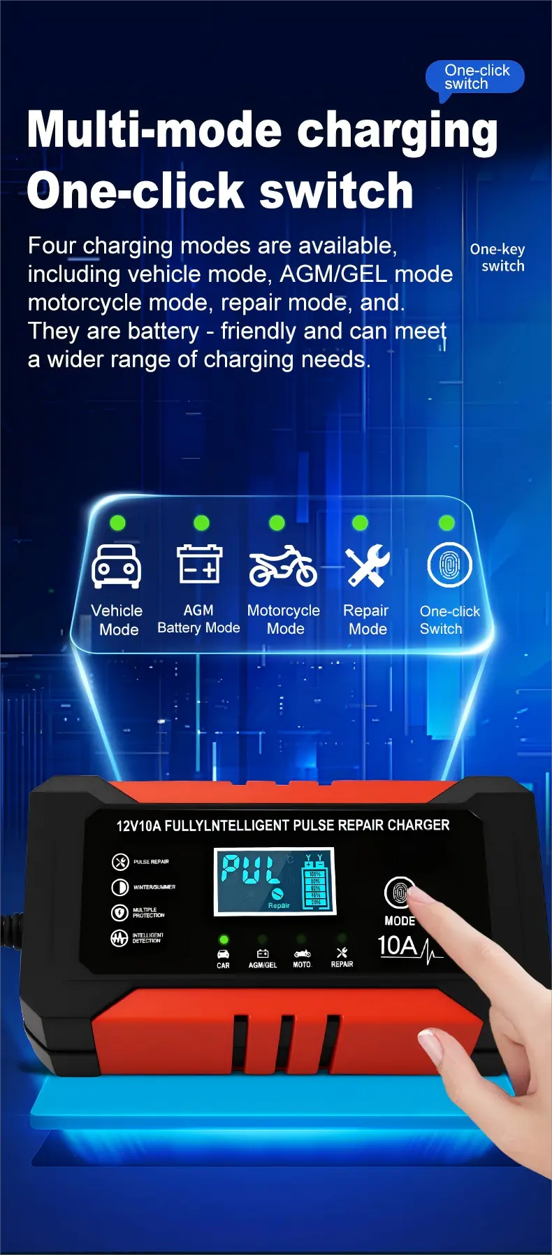STARWELL-en 12V 10A Funtzio Anitzeko Bateria Kargagailu Adimendunak aldakortasuna, segurtasuna eta eraginkortasuna konbinatzen ditu, eta aukera ezin hobea da erabilera pertsonalerako zein profesionalerako. Nazioarteko segurtasun estandarrak betetzen ditu, errendimendu fidagarria eta epe luzerako iraunkortasuna bermatuz zure bateria kargatzeko behar guztietarako.