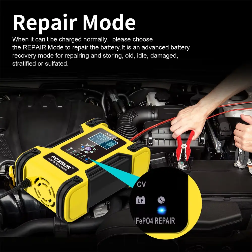 Konponketa-funtzio adimenduna: pultsu-desulfatazio-moduak sulfatatutako bateriak berreskuratzen eta galdutako ahalmena berreskuratzen laguntzen du.