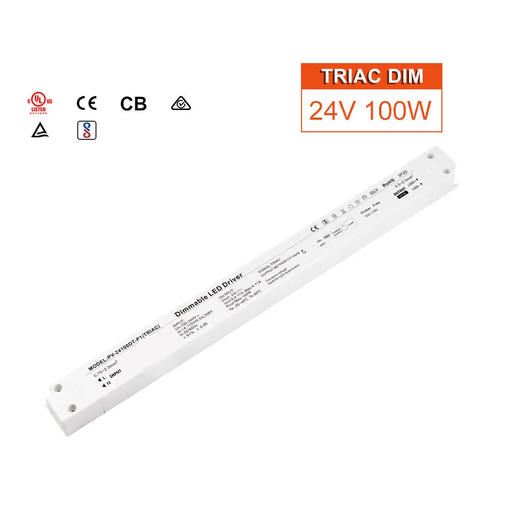 Aplikazio zorrotzetarako errendimendu aurreratua 24V-ko led kontrolatzaile hau zehaztapen teknikoen inguruan eraikita dago. AC sarrera unibertsala du (100-250V), mundu osoko sare elektrikoekin bateragarritasuna bermatuz. %90erainoko eraginkortasun handia eta potentzia-faktorearen zuzenketa (PFC) 0,95etik gorakoa den askotan, energia xahutzea gutxitzen du eta zure sistema elektrikoaren karga murrizten du. Bere funtzionalitatearen muina TRIAC (fase-ebakia) iluntzeko teknologia aurreratua da, % 0tik % 100era bitarteko keinurik gabeko iluntzea ahalbidetzen duena hormako dimmer estandarrekin konbinatuta, giro ezin hobea sortzeko aukera emanez. Hainbat ingurunetan iraunkortasuna lortzeko, IP20 estandarretik IP67-ko aluminiozko karkasa sendora bitarteko itxituretan eskaintzen da, barruko nahiz kanpoko erabilerarako hautsaren eta hezetasunaren aurka babestuz.
