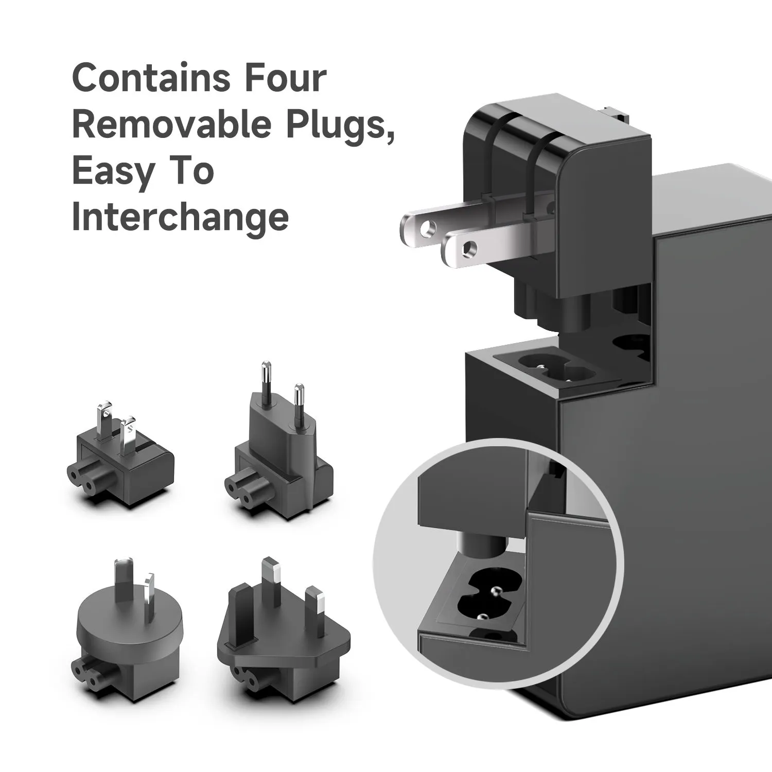 STARWELL 12V 3.33A 40W-ko korronte-egokigailu trukagarri honek diseinu trinkoa eta eramangarria du, herrialde anitzeko estandarrez hornitua -- (US EU AU UK) entxufe ordezkagarriak. Elikatze-iturri trukagarriak herrialde eta eskualdeko entxufeen zehaztapenak erraz kudeatzeko aukera ematen du, bateraezinak diren elikadura-iturrien traba erabat ezabatuz.