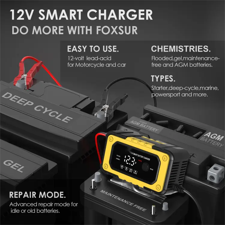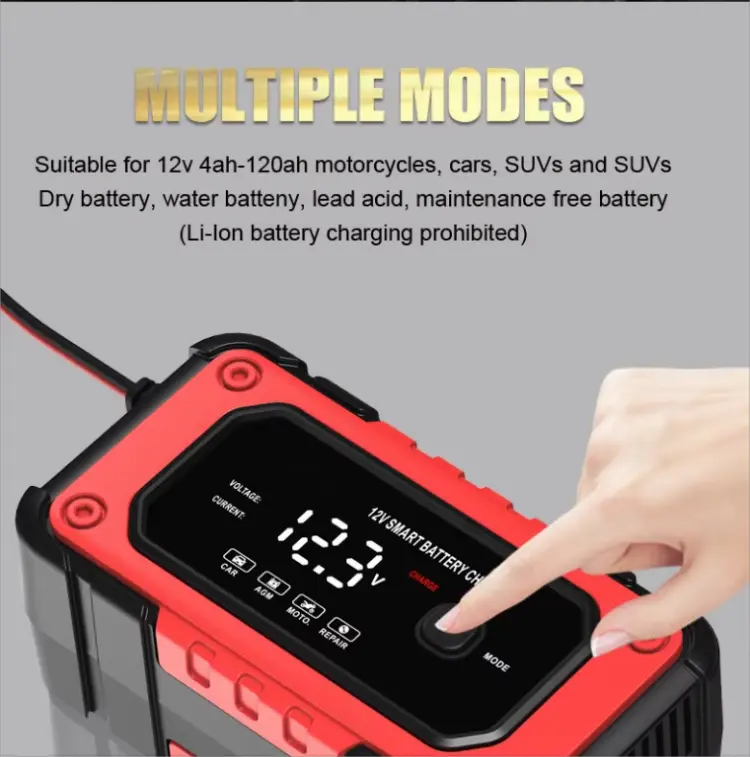 Starwell-ek, Txinako bateria-kargagailu adimendunen fabrikatzaile eta hornitzaile profesionalak, 12V 6A Konponketa Automatikoko Baterien Kargagailu Osoa aurkezten du, berun-azidoko hainbat bateriaren karga-beharrei erantzuteko diseinatutako puntako gailua. Autoen bateriak, motozikletak, quad-ak, belar traktoreak edo itsasontziak kargatu behar dituzun ala ez, kargagailu hau ezinbesteko tresna da zure ibilgailuak ondo funtzionatzeko. Teknologia aurreratuarekin eta funtzio anitzeko gaitasunekin, kargagailu honek kargatzeko irtenbide arrunt bat baino gehiago eskaintzen du.