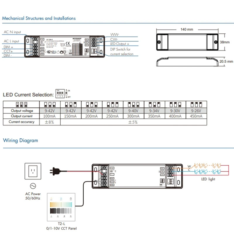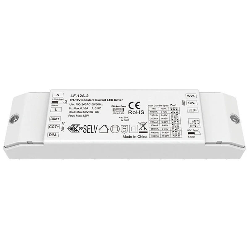 1. 0-10V CCT dimming zehatza: 12W-ko korronte konstanteko 0-10V CCT dimmable LED Driver-ak distira leuna eta kolore-tenperatura doitzea onartzen du iluntze-erantzun linealarekin, 0-10V-ko kontrolagailu nagusiekin bateragarria, giro egokitua kontrolatzeko.