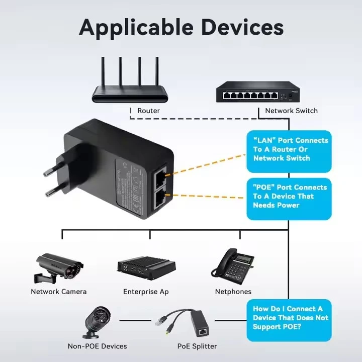 STARWELL Txinan oinarritutako 12V 24V 48V Universal POE egokitzaileen fabrikatzaile ospetsu eta profesionala da. Gure ospea kalitate handiko produktuak arrazoizko prezioetan ekoiztean eraiki dugu, mundu osoko bezeroei zerbitzatu, berrikuntza eta diseinu praktikoa uztartzen dituzten sareko irtenbide fidagarriekin. Gure PoE injektoreak transmisio-tasa sorta zabal bat onartzen dute, 10/100/1000M, 2.5G, 5G eta 10G barne. Aparteko malgutasun honek Ethernet gailu ezberdinekin integratzeko aukera ematen du, ekipamendu zaharretik hasi eta banda-zabalera handiko aplikazioetaraino, zure sare-azpiegitura osoan energia-emate fidagarria eta etenik gabeko datu-transmisioa bermatuz. STARWELL-en PoE injektoreek zorrotz betetzen dituzte IEEE802.3.af/at/bt PoE++ estandarrak, merkatuan dauden PoE gaitutako ia gailu guztiekin bateragarritasun zabala bermatuz. Betetze honek energia-emate eraginkorra ahalbidetzen du, funtzionalitate aurreratuak onartzen dituen bitartean, hala nola, urruneko gailuen kudeaketa eta denbora errealeko energiaren monitorizazioa, sareko administratzaileei beren instalazioen gaineko kontrol handiagoa emanez.