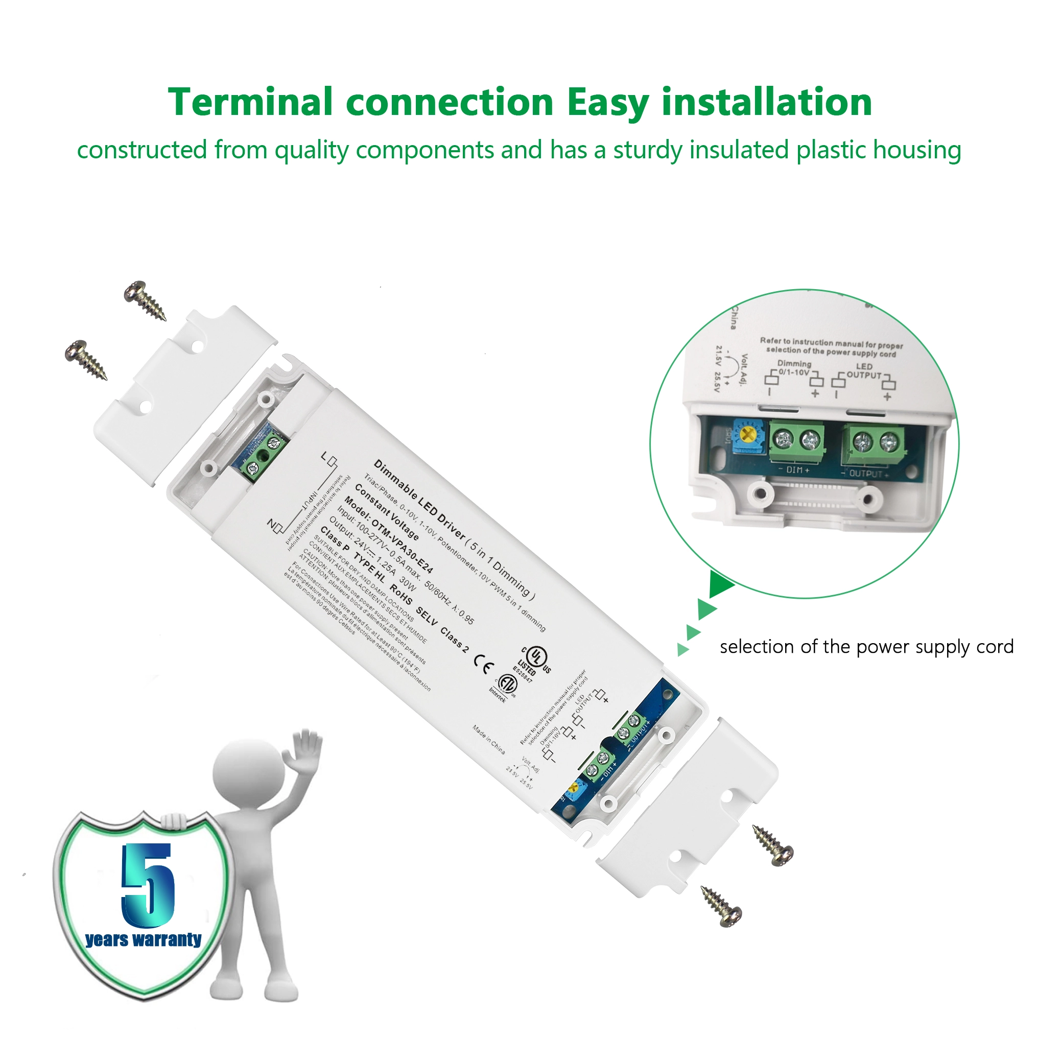 STARWELL fabrikako 24V 30W 0-10V tentsio konstanteko dimming LED kontrolatzaileak 30W-ko gehienezko irteera-potentzia eman dezake eta bereziki diseinatuta dago 0tik 10V arteko iluntze-kontrola lortzeko. Tentsio-irteera egonkorra du ≤ 120mVp-p-ko uhin-koefizientearekin, LED aparatuen argiztapen-errendimendua bermatuz. Bere sarrerako tentsio-tartea zabala da (100-240V AC, 50/60Hz), bihurtze-eraginkortasuna %88rainokoa da, energia aurrezteko funtzionamendua ahalbidetuz. Tentsio estandarrak ere betetzen ditu. 0-10V-ko LED kontrolatzaile hau babes-funtzio ezberdinez hornituta dago barruko eta kanpoko argiztapen-aplikazio ezberdinetan erabilera fidagarria eta segurua bermatzeko.