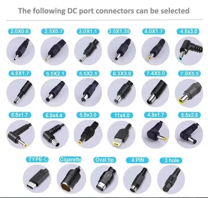 3. Konektoreen bateragarritasuna: ziurtatu egokigailuaren DC irteerako entxufeak polaritate (askotan erdigune positiboa) eta tamaina fisikoa (adibidez, 5,5 mm x 2,1 mm) duela zure gailuaren korronte-harremanera segurtasunez egokitzeko.