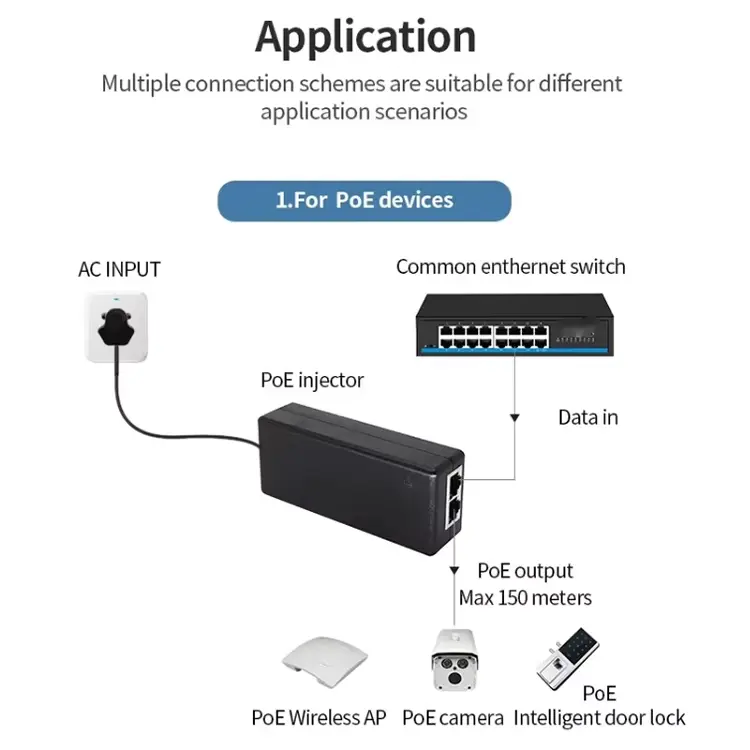 24V 1A Gigabit POE injektore pasibo hau oso erabilia da: