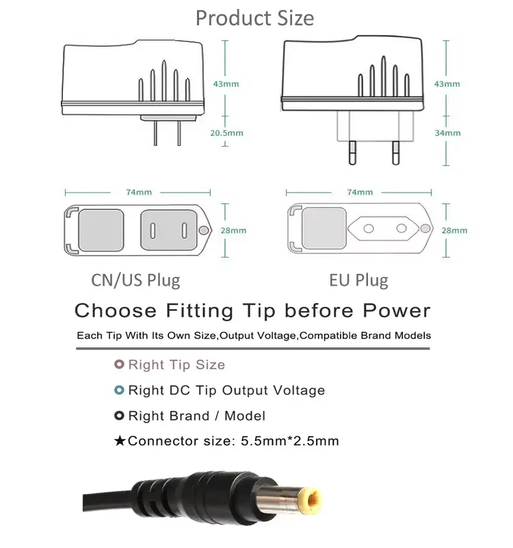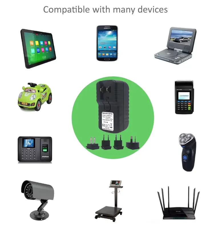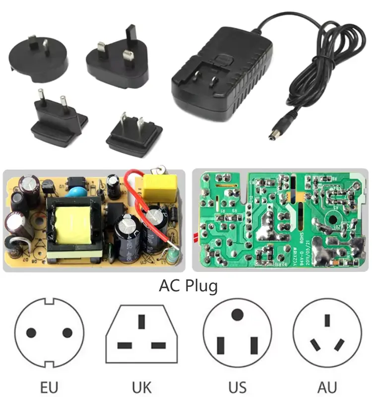 Starwell Txinako fabrikatzaileak eskaintzen du kalitate handiko 24 W-ko elikadura-egokitzailea, gure egokitzaile honek entxufe motak ditu, hala nola AEB, Erresuma Batua, EB eta AU entxufeak.