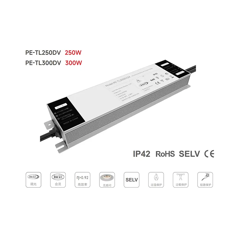 Starwell fabrikako kalitate handiko 250W Constnat Current DALI Dimmable LED Driver LED argiztapen sistema profesionaletarako diseinatutako errendimendu handiko potentzia-soluzioa da, 24V DC irteera egonkorra eskaintzen duena DALI-2 protokoloaren bidez iluntze leunarekin. IEC 62386 arauak betetzen ditu, % 0-100eko iluntze lineala onartzen du, eta DALI kontrolagailuekin eta argiztapena kudeatzeko sistemekin bateragarritasunik gabekoa bermatzen du merkataritza, industria eta arkitektura aplikazioetarako.