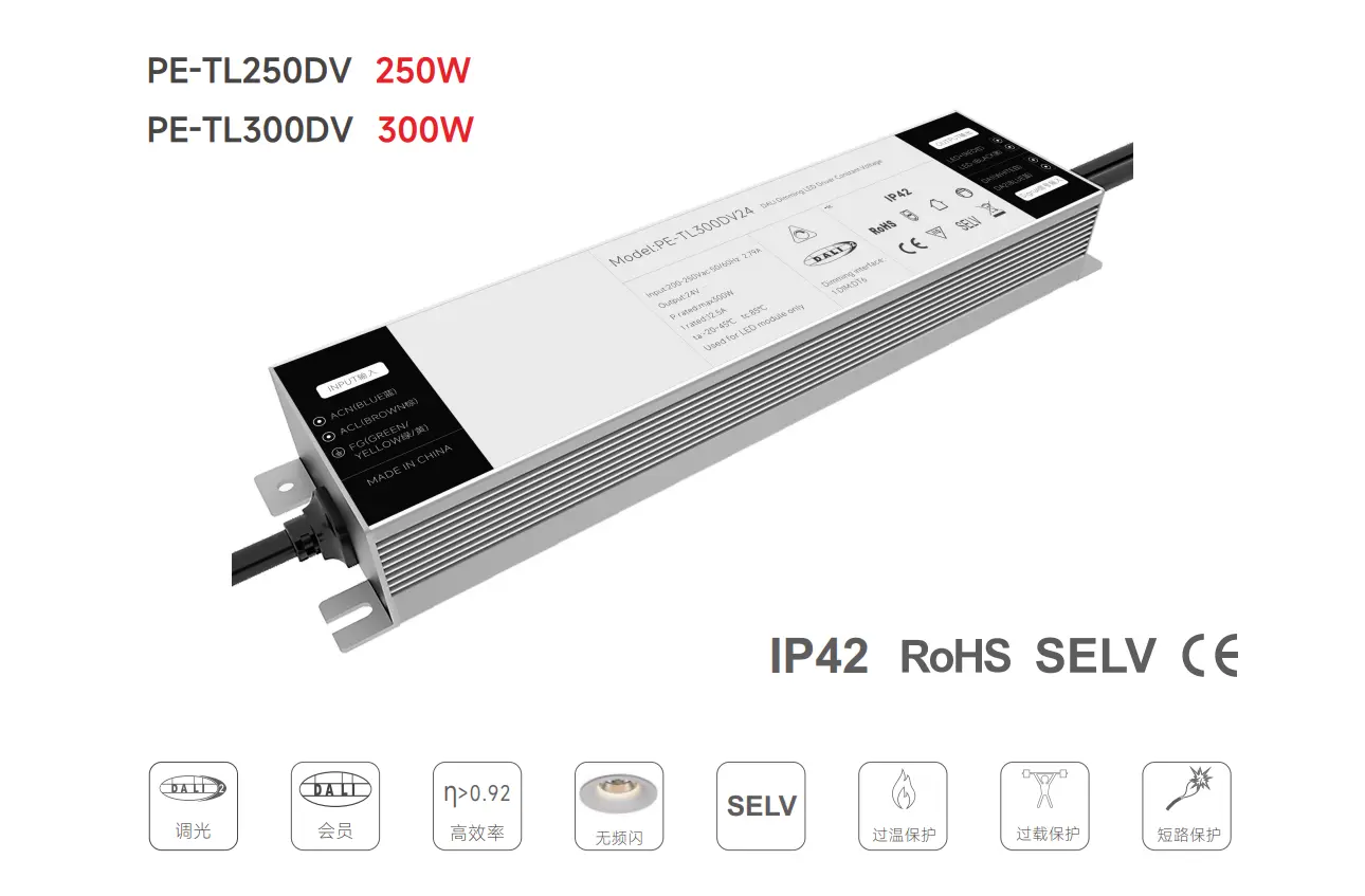 100-277V AC-eko sarrerako tentsio-tarte zabala du, mundu mailako sare elektrikoetan eraginkortasunez funtzionatzen du energia-eraginkortasuna %92raino, energia-kontsumoa eta bero-sorkuntza murriztuz. Gehiegizko tentsioaren, korrontearen, zirkuitu laburren eta tenperaturaren aurkako babes integratuak epe luzerako fidagarritasuna eta funtzionamendu segurua bermatzen ditu.