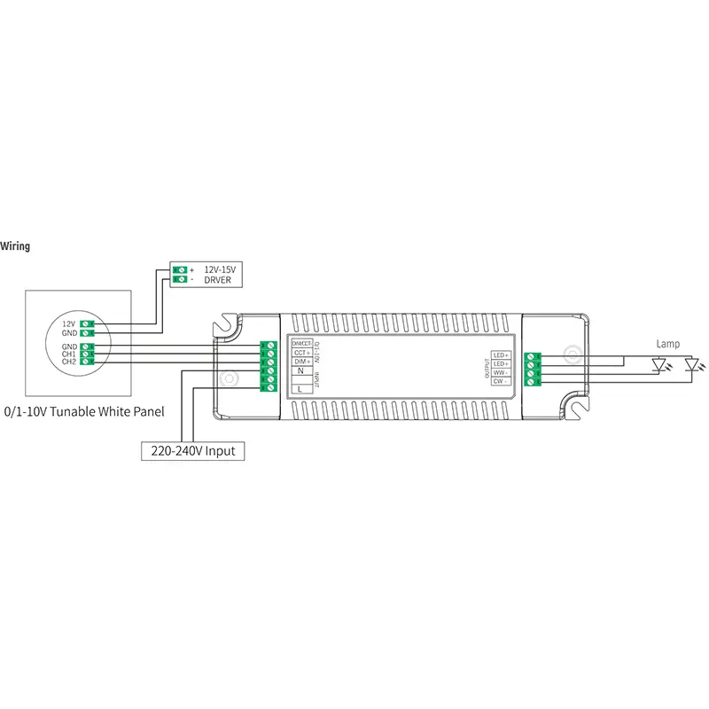 Zehazki, gidari honek AC-DC energia transferentziaren eraginkortasun bikaina du, sarrerako AC potentzia modu eraginkorrean bihurtzeko LED funtzionamendurako egokia den DC potentzia, energiaren kontserbazio eta egonkortasunaren oreka lortuz. Erabiltzaileek modu independentean eta leuntasunez kontrolatu ditzakete konektatutako aparatuen distira eta kolore-tenperatura 0-10V-ko iluntze-seinale analogiko estandar baten bidez. Horrek esan nahi du % 0tik % 100era arteko distira pausorik gabeko doikuntza onartzen duela, baizik eta Kolorearen Tenperatura Iluntzeko funtzionaltasuna ere integratzen duela, erabiltzaileei 2700K-ko argi hori beroaren eta 6500K-ko argi zuri freskagarriaren artean botoi bakarrarekin aldatzeko aukera emanez, eszenatoki eta garai ezberdinetara egokitzen den giro argia sortuz. Hori dela eta, 40W barruko erabilerarako LED argiztapen aproposa da, kolore-tenperatura iluntzeko LED kontrolatzailearekin, bereziki egokia den espazio komertzialetarako, goi-mailako etxeetarako, bulego-inguruneetarako eta argiaren kalitatea zorrozki eskatzen duten hoteletarako.
