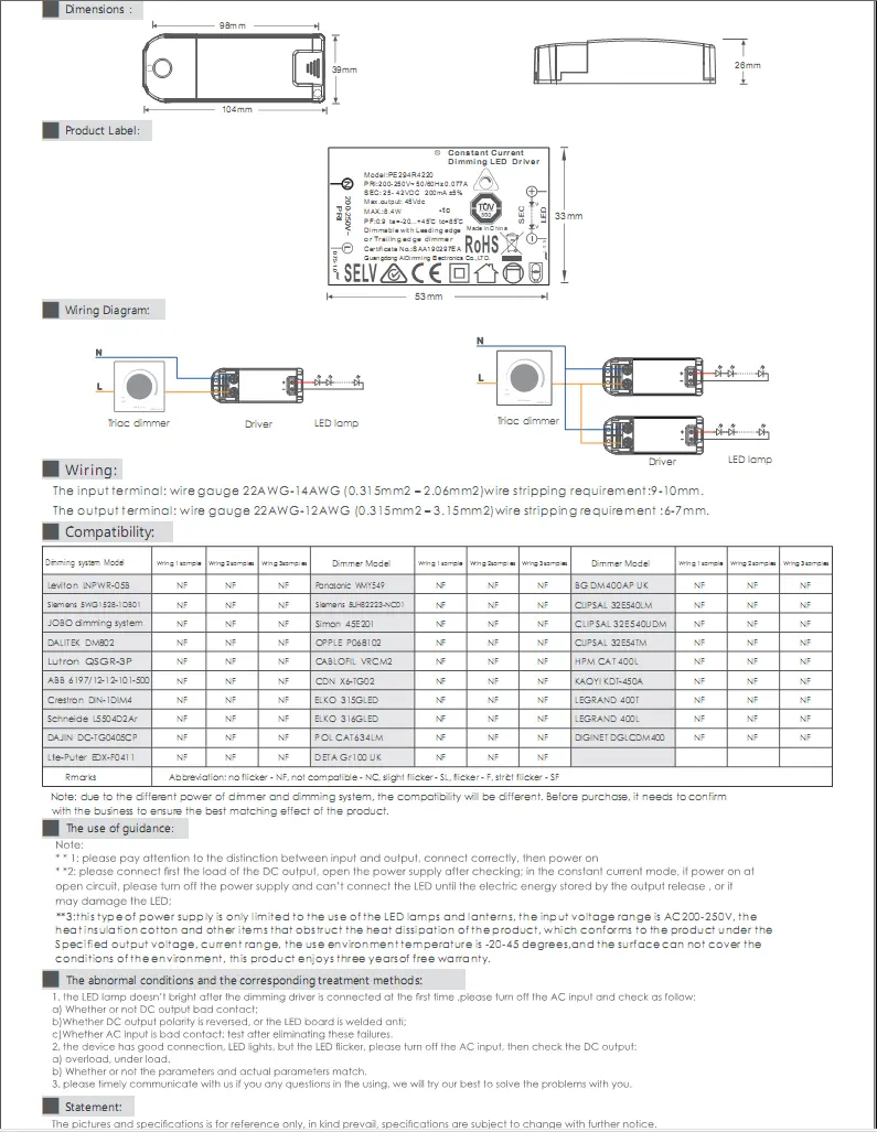Kalitate handiko PE294R 42V max 200ma korronte konstanteko triac dimming led kontrolatzailea Txinako Starwell fabrikatzaileak garatutako korronte konstanteko LED murgiltzaileetako bat da, potentzia-faktorea, eraginkortasun handiko, doitasun handikoa, galera baxuko etengailuaren kontrol txip eraginkorra erabiltzeak eta errendimendu handiko osagaiek zarata gutxiko bizitza luzearekin eta beste ezaugarri batzuekin mozten dute.