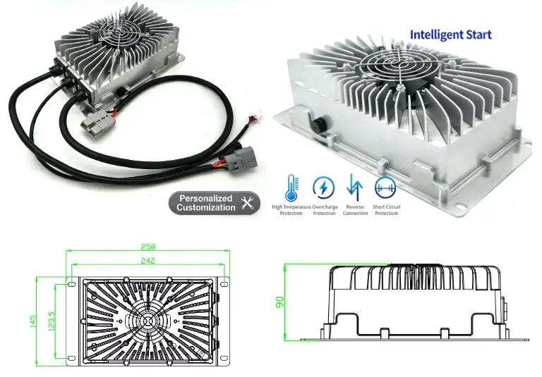 480W OBC 24V 15A kargagailua ezin hobea da auto elektrikoetarako, motozikletetarako, turismo-ibilgailuetarako, eskorga jasogailuetarako, itsas-ontzietarako eta industria-makineriarako. Diseinu iraunkorrak eta bateriaren euskarri zabalak EV kargatzeko sistemak errendimendu fidagarriarekin berritu nahi dituzten fabrikatzaile, hornitzaile eta fabrikentzat hobetsitako aukera bihurtzen dute.