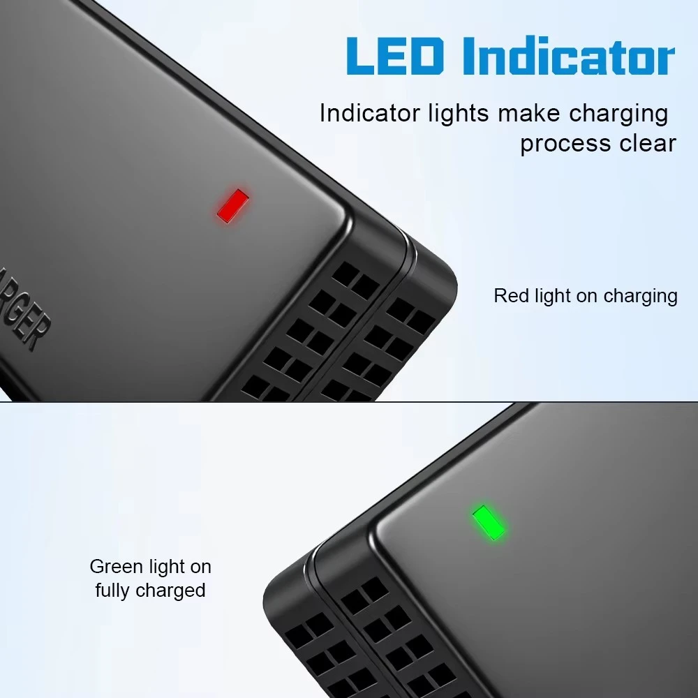 Errendimendu sendoa izan arren, kargagailuak diseinu trinko eta arina du, eramateko erraza egiten duena. Etxerako, bulegorako kargagailu bat behar duzun ala ez, edo motxilan gordetzeko edonon kargatzeko, bere eramangarritasunak energia seguru eta fidagarrirako sarbidea bermatzen du. Iraunkorra eta erabilerraza, 48 V-ko kargagailu hau zure litio-ioizko baterien osasuna eta errendimendua mantentzeko potentzia lagun ezin hobea da.