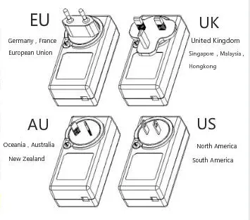 * Entxufe unibertsalak: AEB/EB/AU/UK/JP eta gehiago