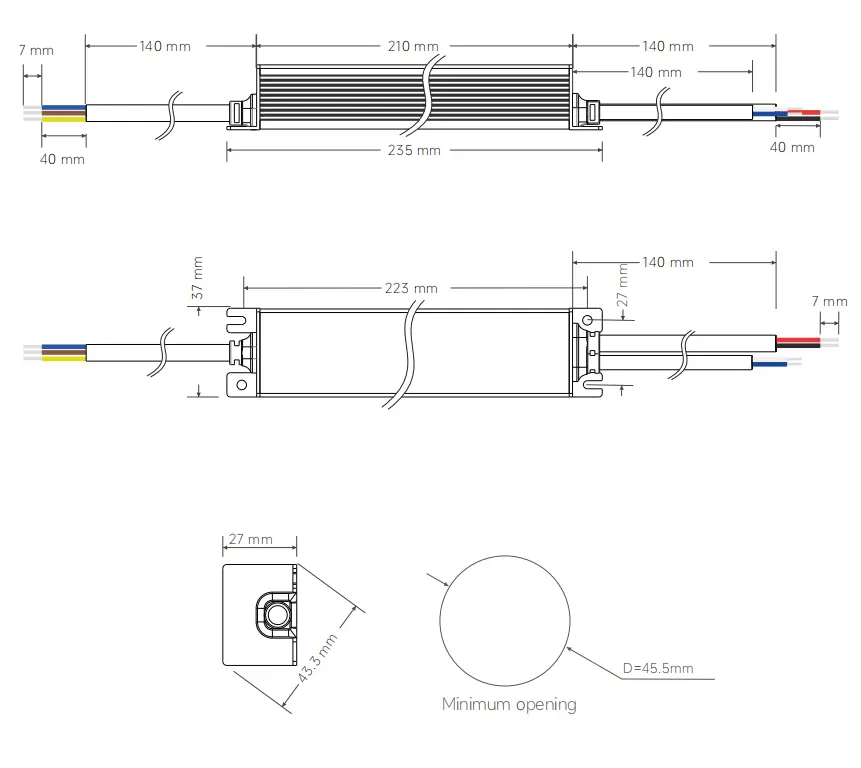 235 × 37 × 27 mm (L × W × H) |