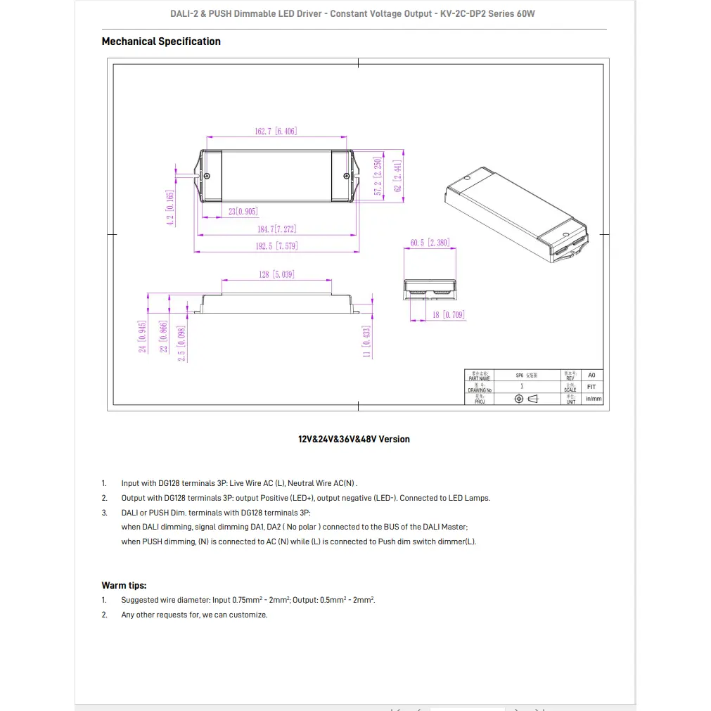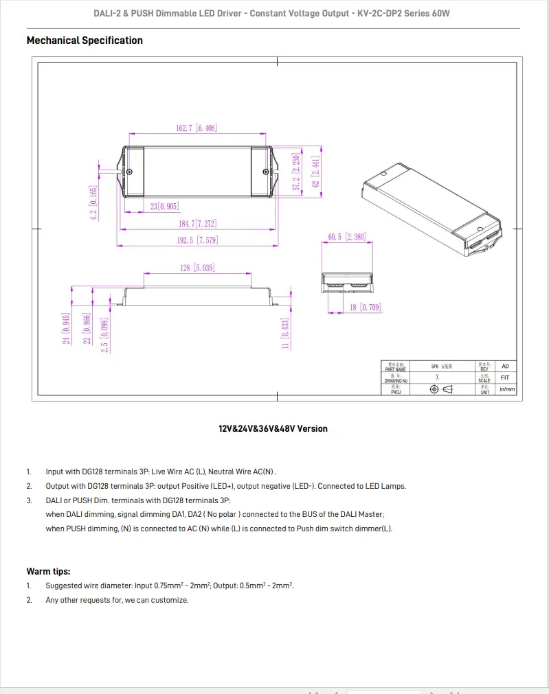 Iluntzeko funtzioa: DALI-2 & PUSH 2 in 1 dimming (CCT). PWM irteerako maiztasuna 4KHz.