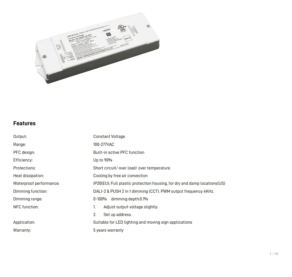 Gidari-mota honek distira eta kolore-tenperatura (CCT) leunki doitzeko aukera ematen die erabiltzaileei zuri berotik zuri hotzara, LED aparatuetarako potentzia egonkorra mantenduz, hala nola panelak, banda-argiak eta downlights.