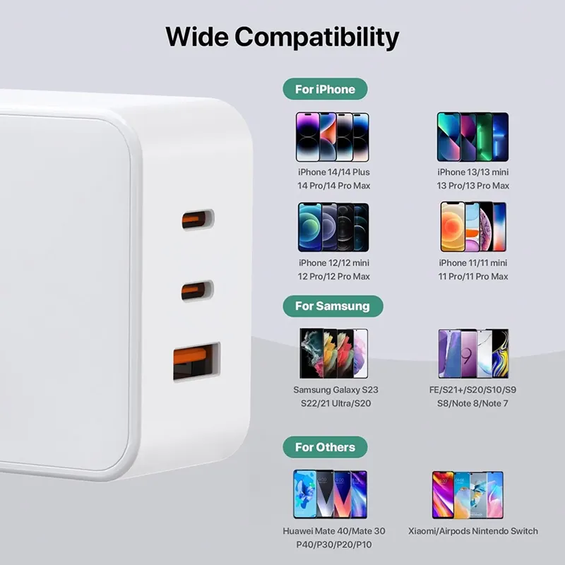 Kargagailu honek 65 W-ko potentzia koherentea ematen du eta ordenagailu eramangarriak (adibidez, MacBook Air/Pro, Dell XPS), tabletak, telefonoak (iPhone, Samsung Galaxy) eta PD protokoloa onartzen duten beste gailu batzuk kargatzen ditu. Bere diseinu trinkoa eta arina bidaietarako aproposa da, eta gaintentsio, gainkorronte eta zirkuitu laburren babesak kargagailuaren eta konektatutako gailuen karga segurua bermatzen du. Normalean 1-2 USB-C interfazeekin hornituta dago, aldi berean hainbat gailu txiki kargatzen dituena, potentzia eta erosotasuna orekatuz.