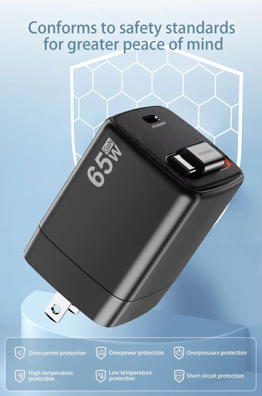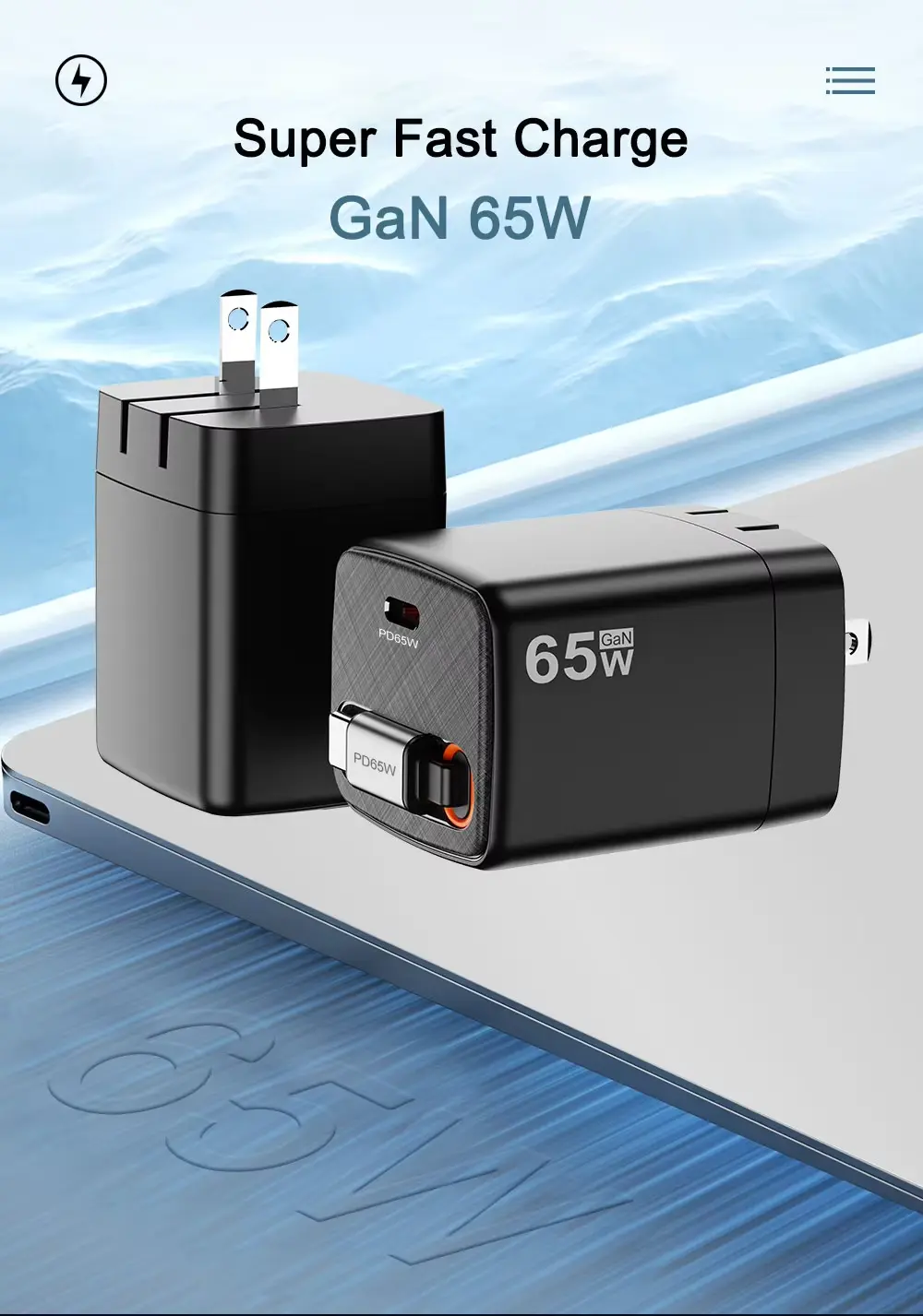 Logotipo pertsonalizagarria Mini 65W PD Gan USB C kargagailua AEBetako entxufea tolesgarria USB bidaia egokitzailea Telefonoaren kargagailua |