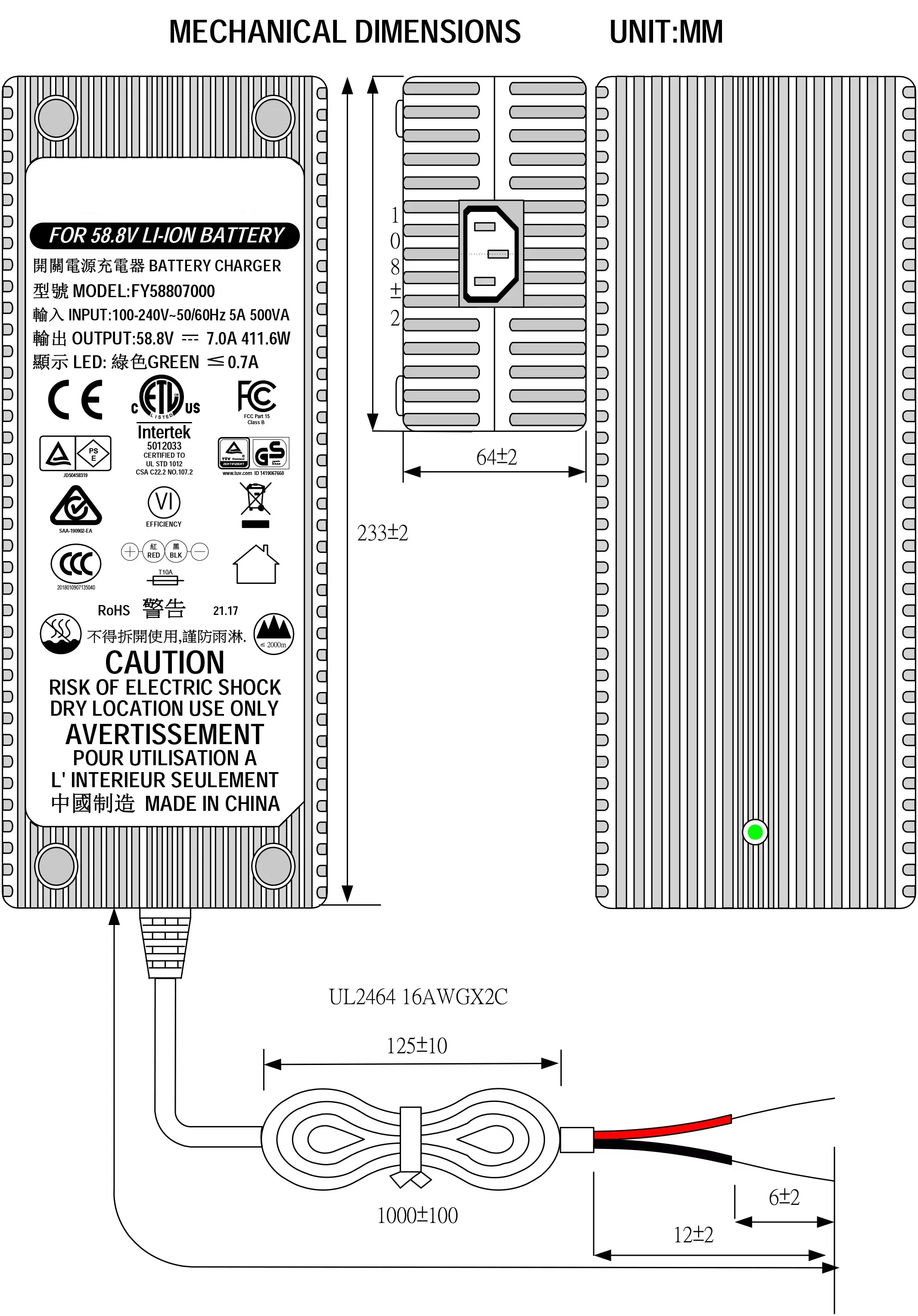 UL, ETL, CUL, GS, CE, BS, SAA, KC, PSE, CB, FCC, EMC, RoHS, REACH estandarren arabera ziurtatuta, kargagailu honek potentzia eraginkor, azkarra eta segurua eskaintzen du mugikortasun elektrikoko aplikazio zorrotzetarako.