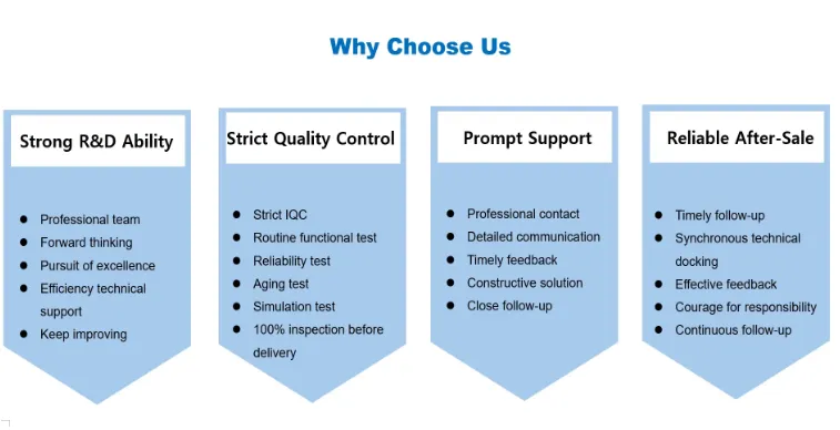 Gure produktuek zorrozki aipatzen dituzte nazioarteko estandarrak eta industriako estandar altuak diseinutik frogatzetik produkzio masiboraino, eta nazioarteko estandarrak betetzen dituzte, hala nola CE, FCC, RoHS, ETL eta abar merkatu globalean bateragarritasuna eta betetzea bermatzeko.