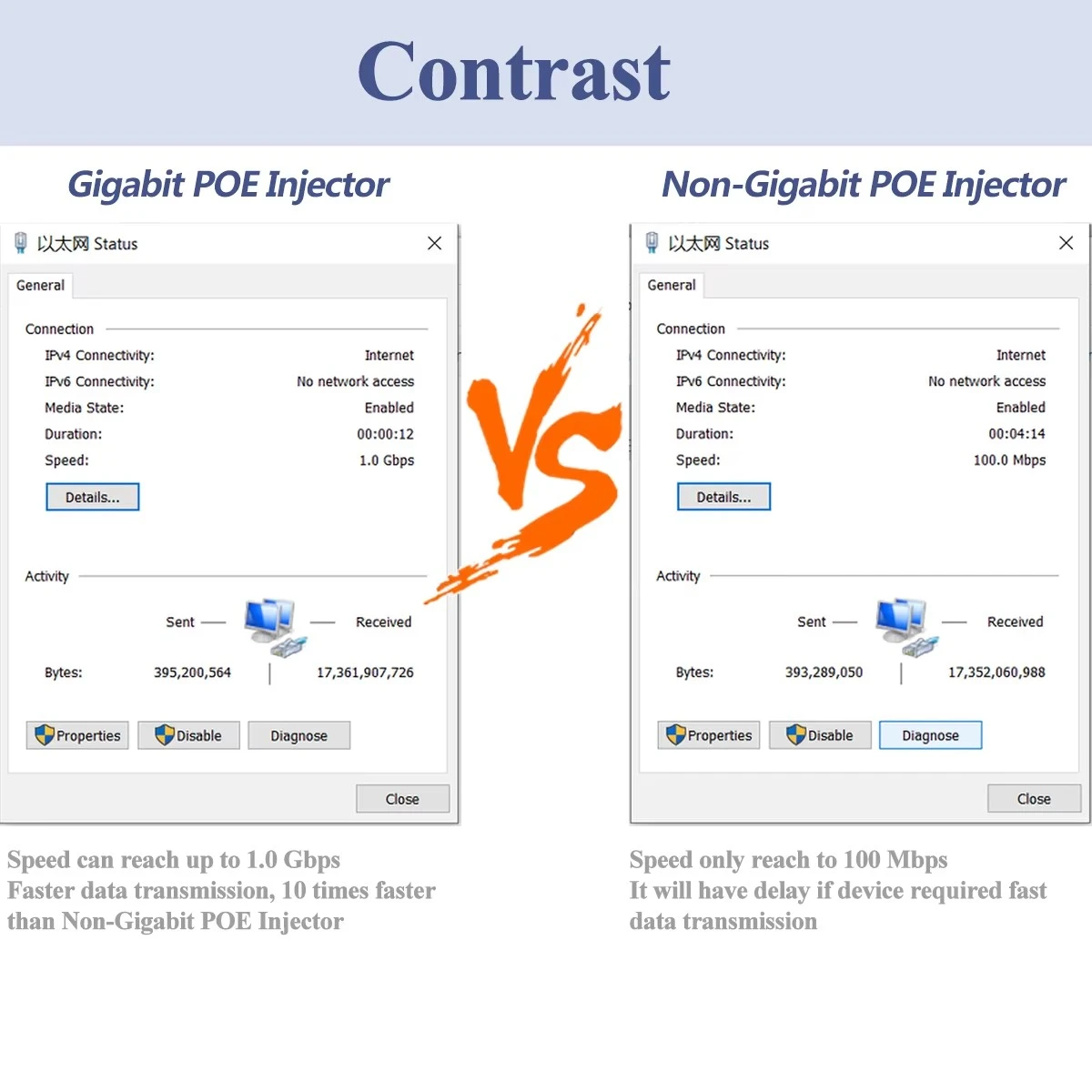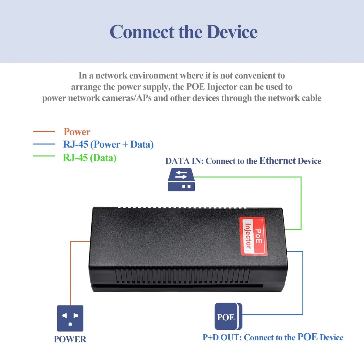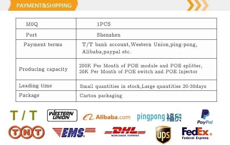 * POE Pin: 1,2+/3,6- 4,5+/7,8- * Standard ez diren Ethernet terminalen hautematea eta babes automatikoa * 10/100/1000Base-T LAN ingurunea onartzen du * Loturatze-eginbide paregabea erraz instalatzeko