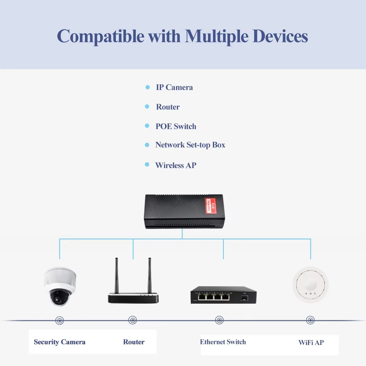 Urruneko energia hornitzen die gailuei, hala nola haririk gabeko sarbide-puntuak, PTZ IP kamerak eta bideo-telefonoak