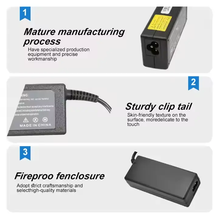 Potentzia bihurketa fidagarri eta eraginkorra lortzeko diseinatua, mahaigaineko 65 W-ko egokitzaile honek horma-hartune estandarretako korronte alternoa (AC) korronte zuzen egonkorrean (DC) eraldatzen du, gailu elektroniko sorta zabalen energia-beharrei erantzuteko.