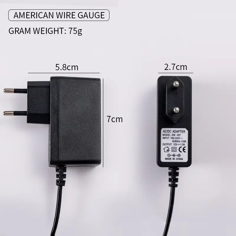 12V 1.5A Horma-muntaia aldatzeko korronte egokitzailea - Deskribapen zehatza