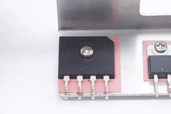 PCBA moduluan aluminiozko aleazioko bero-husketa bat ere estaltzen da eta potentzia-gailuak torlojuekin finkatzen dira.