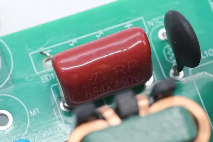 Erresonantziazko kondentsadorea MMKP82 seriekoa da, 0,047μF 630V-ko zehaztapenarekin.