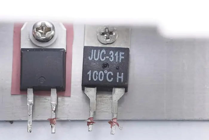Zubia zuzentzailea, PFC diodo zuzentzailea eta etengailu termikoa bero-husketatzean finkatzen dira.