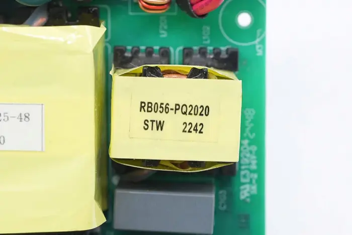 Transformadoreak PQ3525 nukleo magnetikoa hartzen du, R0168 elikadura ereduarekin markatua.
