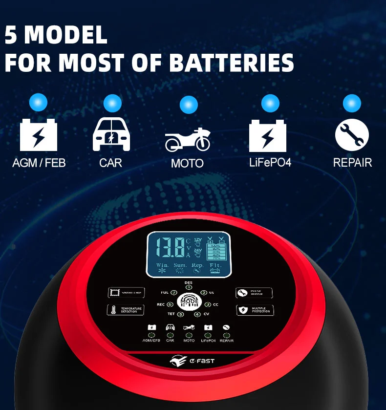 Txinako fabrikatzaile profesional gisa, Starwell-ek kalitatezko TK-1500 Bateriaren Kargagailu Adimendunak segurtasun-babes-funtzio ugariz hornituta dago, hala nola, gaintentsioaren babesa, gainkorrontearen babesa, zirkuitu laburren babesa, alderantzizko konexioaren babesa eta berotze-babesa, karga-prozesu segurua eta fidagarria bermatuz. Flotazio kargatzeko mantentze-modua ere onartzen du, denbora luzez aparkatuta dauden ibilgailuen bateria mantentzeko egokia. IP65 babes kalifikazioarekin (adibidezko balioa, benetako baldintzen arabera doi daiteke), itsasontzietan edo kanpoaldean ingurune hezeak eta hautsak kudeatu ditzake. Autoen bateriak egunero kargatzeko edo belarra mozteko edo arrantza-ontzietarako bateriak energia osatzeko, TK-1500-k kargatzeko esperientzia eraginkor, egonkor eta adimentsua eskain dezake, eta aukera ezin hobea da erabiltzaile profesionalentzat zein brikolaje zaleentzat.