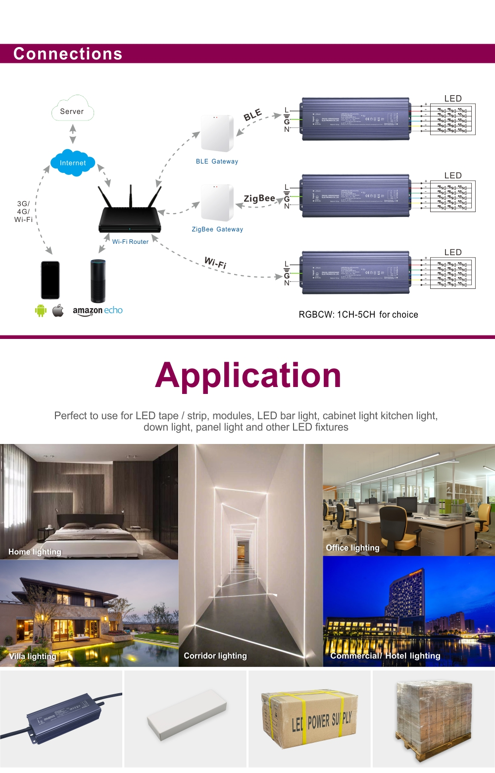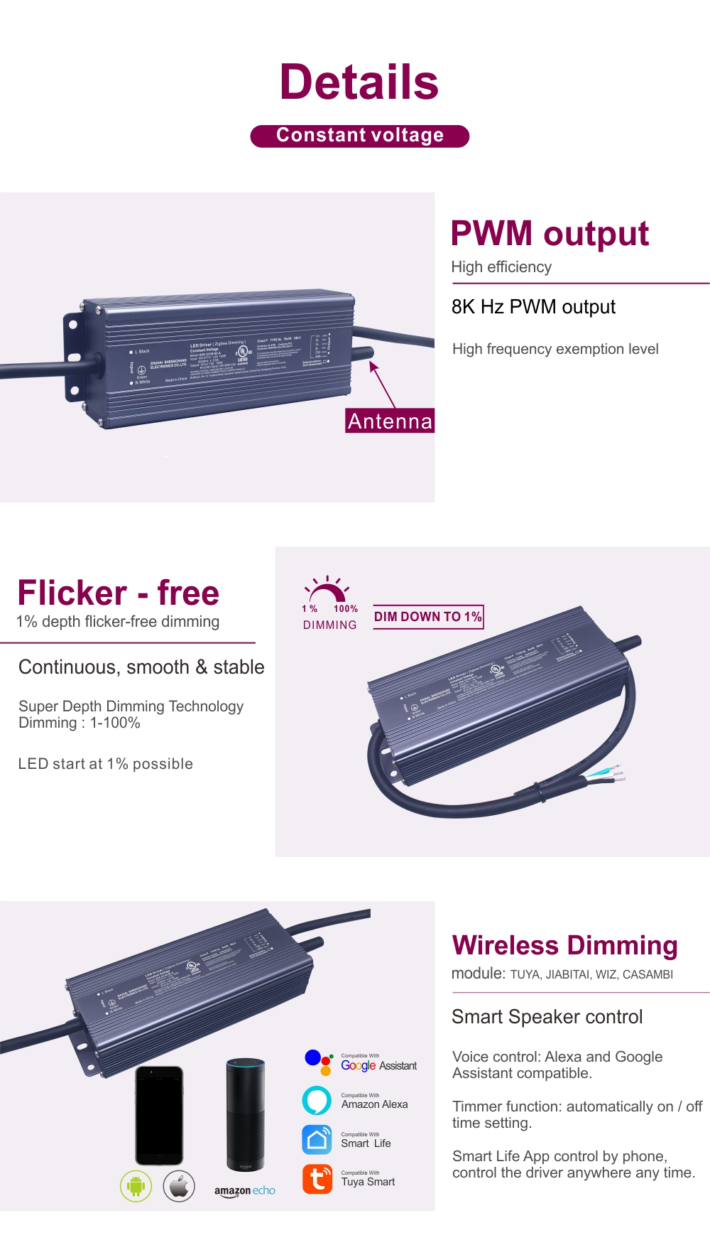 Tuya Smart ekosistemarekin oso integratuta dagoen Tuya Zigbee Wireless Dimming Constant Voltage 120W LED Driver honek Zigbee 3.0 komunikazio protokolo berriena erabiltzen du bi norabideko komunikaziorako.