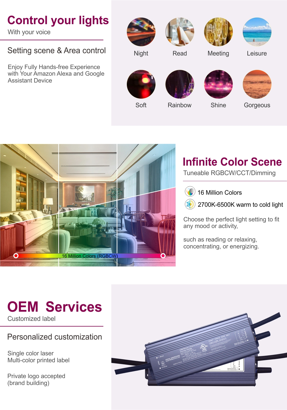 Askatu zure diseinu-sormena gure kanal bikoitzeko irteera independenteko arkitektura bereziarekin. Kanal bakarreko kontrolatzaile tradizionalek ez bezala, 120 W-ko unitate honek bi LED zirkuitu edo lanpara talde bereizi aldi berean kudeatzeko aukera ematen du gailu bakar batetik.